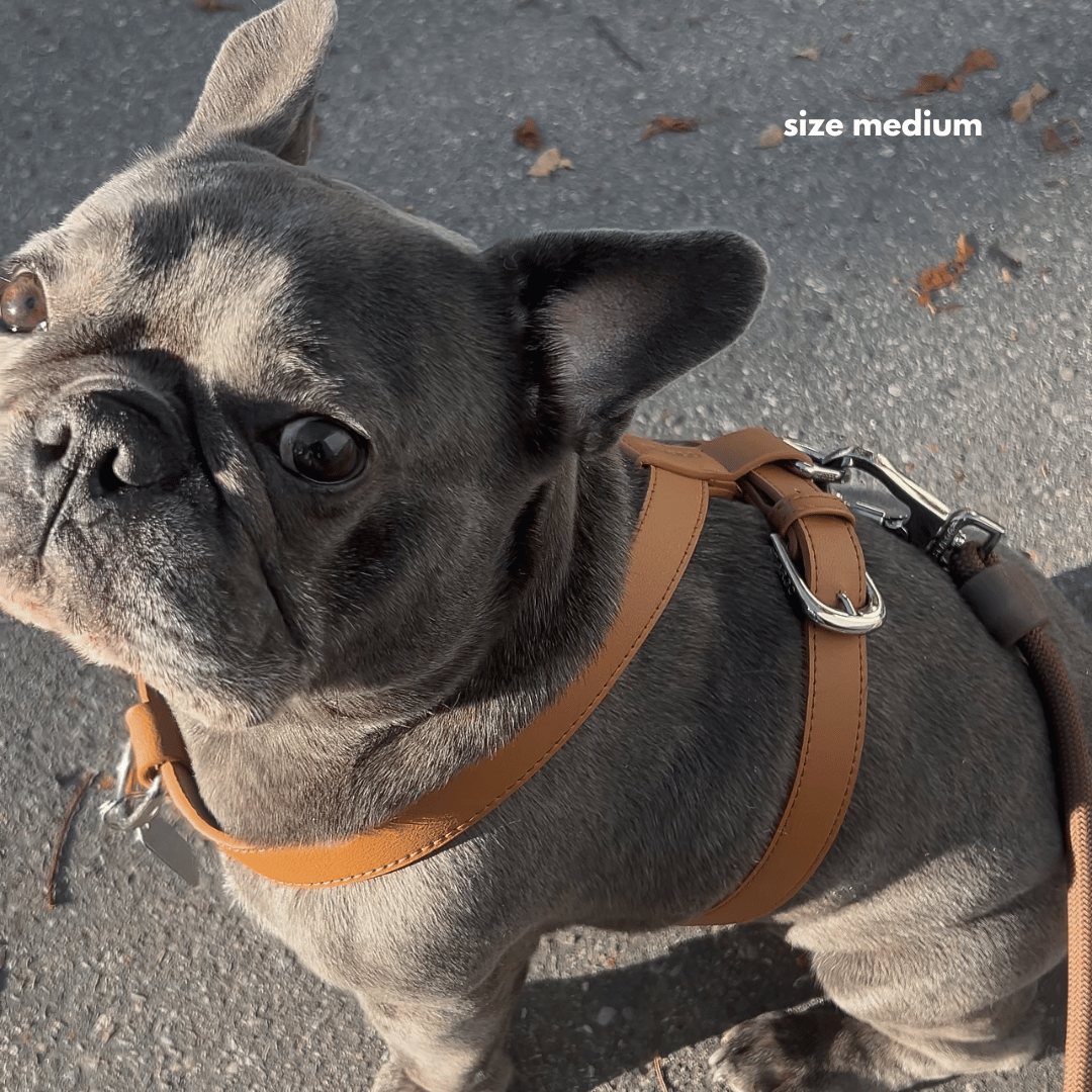 The brown harness is a milk chocolate neutral.