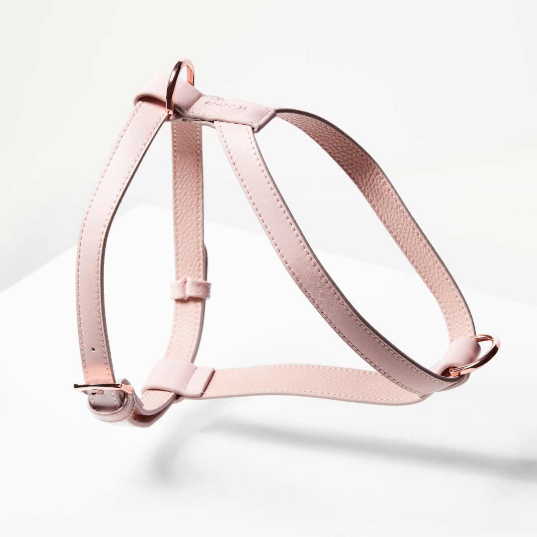 A lightweight, no pull harness designed for comfort and control. Crafted with a smooth cruelty-free PU leather exterior and a softly pebbled offset lining, it feels gentle against your dog’s chest while maintaining a clean, structured look. Our non-restrictive design slips easily over the head, with fully adjustable chest straps for a secure, tailored fit. Easy on, easy off, and comfortable for everyday wear. Chic, understated, and made to move.